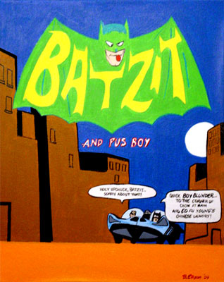 An original of the artist based on his short lived 1973 comic book creation "Batzit and Pus Boy"